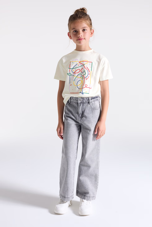 Weißes Kurzarm-T-Shirt mit Schriftzug Mädchen