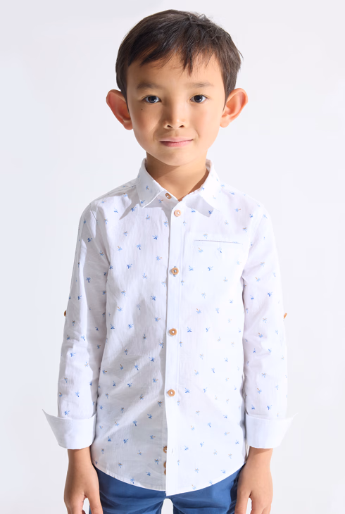 Weißes, mit Palmen-Motiv bedrucktes Hemd Jungen