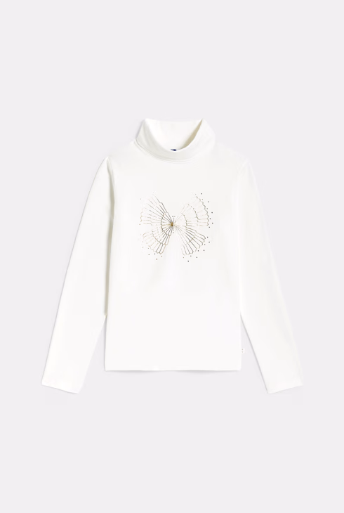 Weißes Rollkragen-T-Shirt mit Glitzermuster für Mädchen