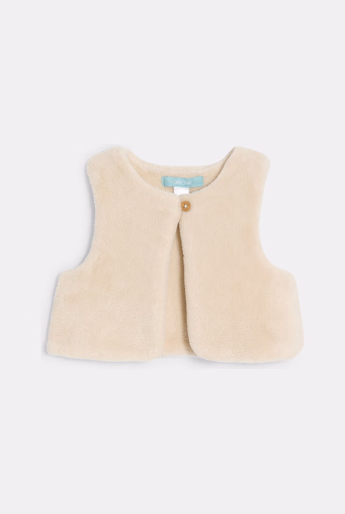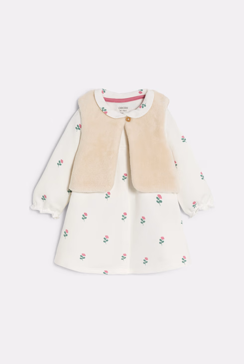 Weißes Samtkleid mit Rosen und Sherpa-Weste Kleinkind Mädchen