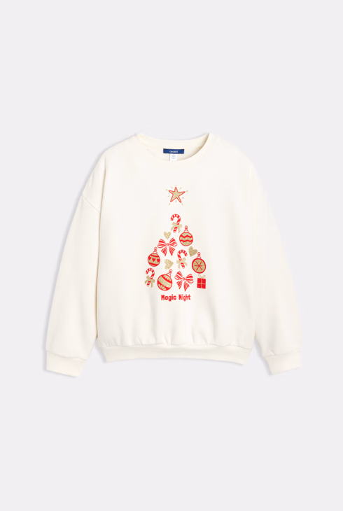 Weißes Sweatshirt mit festlichem Motiv für Mädchen