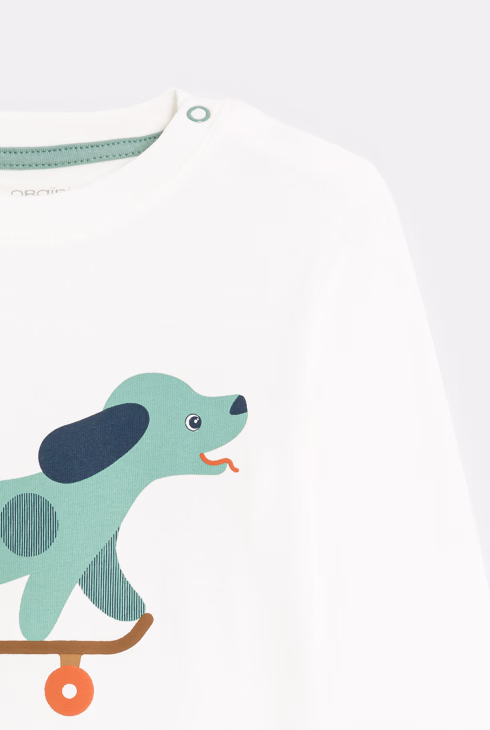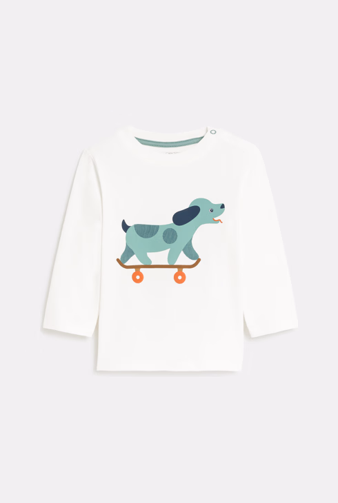 Weißes T-Shirt mit Hund und Skateboard Baby Jungen