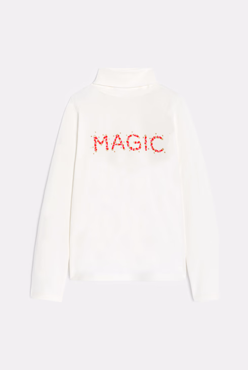 Weißes T-Shirt mit Rollkragen und Message für Mädchen