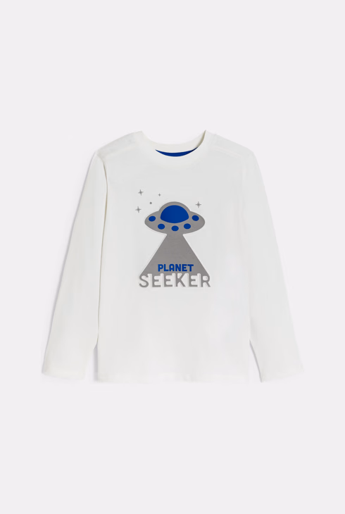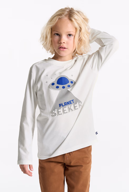 Weißes T-Shirt mit UFO-Motiv für Jungen